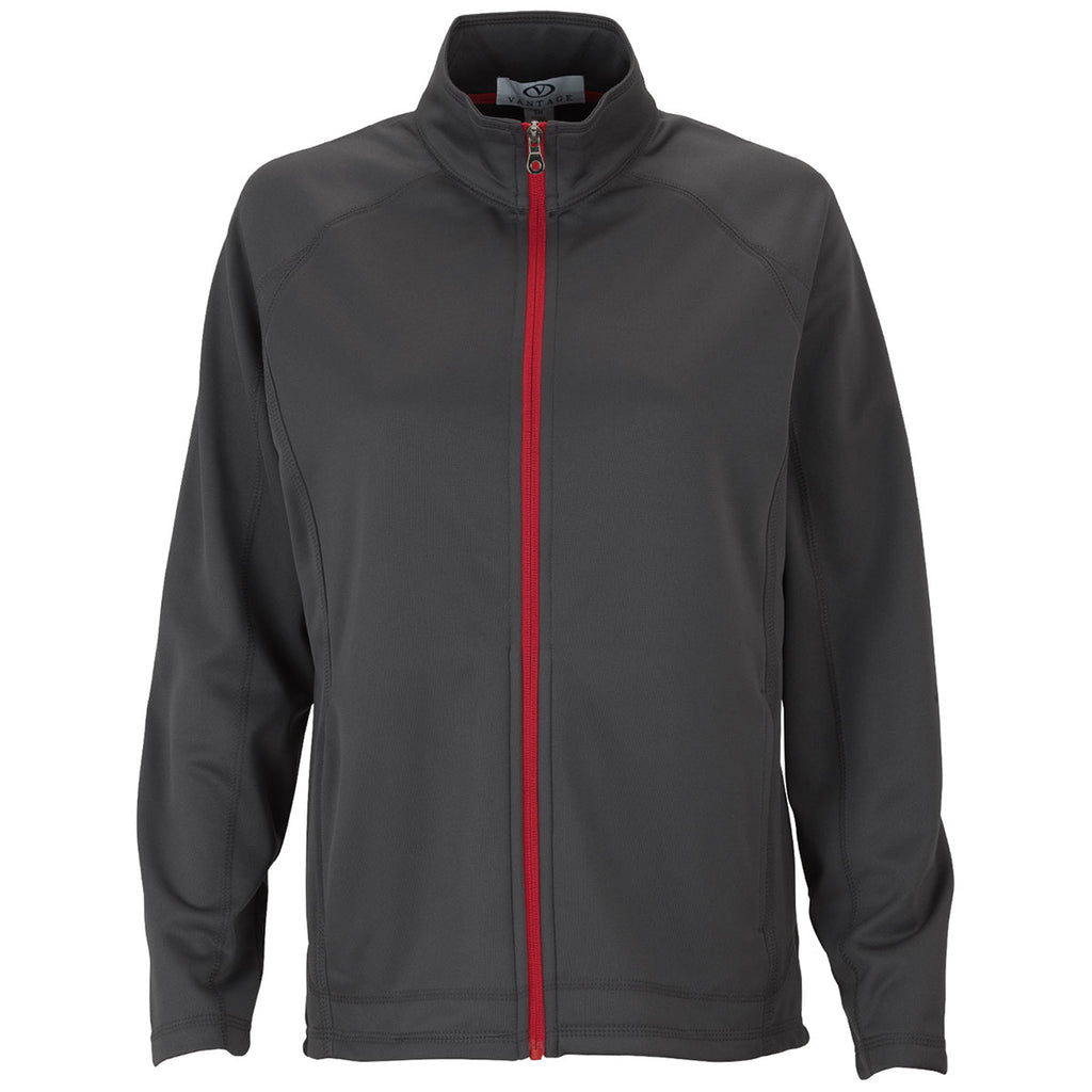 Vantage Women's Dark Grey/Sport Red Brushed Back Micro-Fleece Full-Zip Jacket
