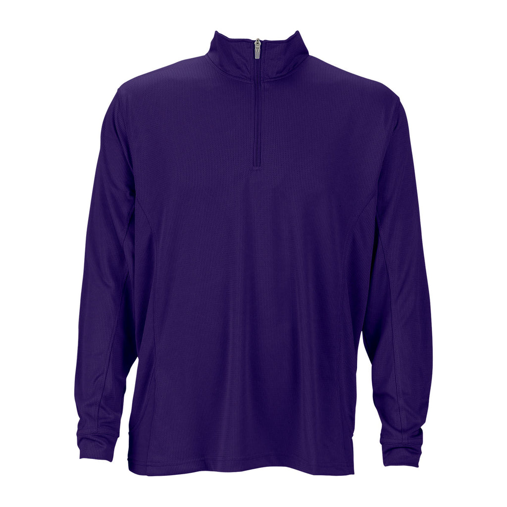 Micro mesh designed for the embroidered Vantage Men's Purple Mesh 1/4-Zip Tech Pullover encourages air to circulate around and through the highly durable fabric. Constructed with hard to tear polyester, the quarter-zip pullover withstands the worst punishment delivered from participating in high octane sports competitions. The blocked side insets and right side seam pocket add panache to a pullover you can wear for all occasions. Put the pullover on for casual corporate apparel Fridays and keep it on after work while enjoying a quiet diner at your favorite restaurant. Add your company logo and enjoy the financial reward of more sales.Corresponding Women's Style: Vantage Women's Purple Mesh 1/4-Zip Tech Pullover