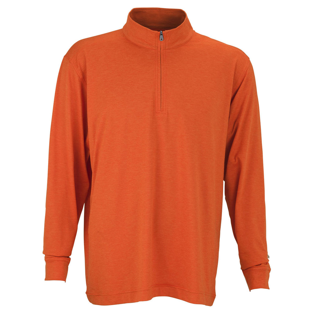 Moisture management technology ensures you enjoy supreme dry comfort on the most humid days of the year. Use the pullover at the start of a chilly round of golf and leave it on afterwards while you relax at an outdoor company event. Set in sleeves present a refined look that gets you noticed at industry trade shows. Add your company logo to the embroidered Vantage Men's Orange Zen Pullover to get the attention of prospective customers. Or make it an addition to your recruiting campaign by giving the fashionable pullover away to the job candidates who attend your next recruiting event.Corresponding Women's Style: Vantage Women's Orange Zen Pullover