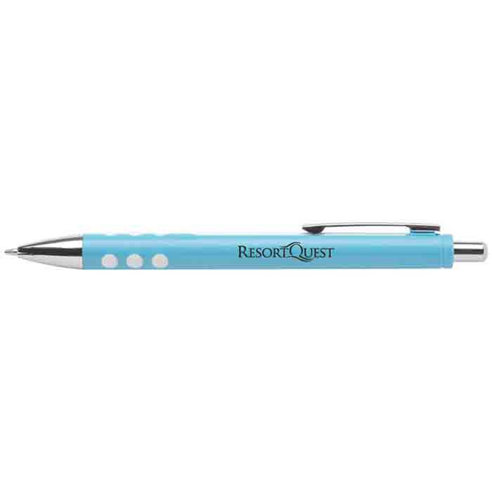 Easy to operate push retractable action makes the Hub Pens Light Blue Hulo Pen writing instrument a must have addition to your office supply inventory. Durable plastic covers the retractable pen to prevent damage caused by strong impacts that result from frequent mishandling of the writing device. Enjoy even distribution of solid ink that never runs into other part of your notes. Bright colors and a glossy finish complement the silver accents. Sleek lines added for high end business accessory appeal do not create an expensive pen your company cannot afford. Add your corporate logo to complete the design deal.