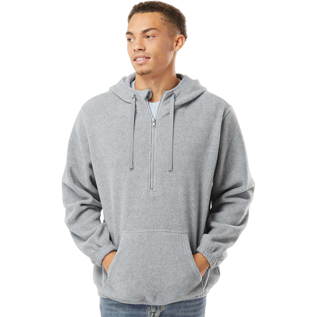 Burnside Men's Heather Grey Polar Fleece Quarter-Zip Hooded Pullover