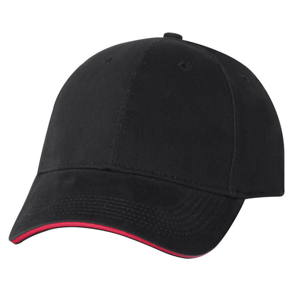 Bayside Black/Red USA-Made Structured Twill Cap with Sandwich Visor