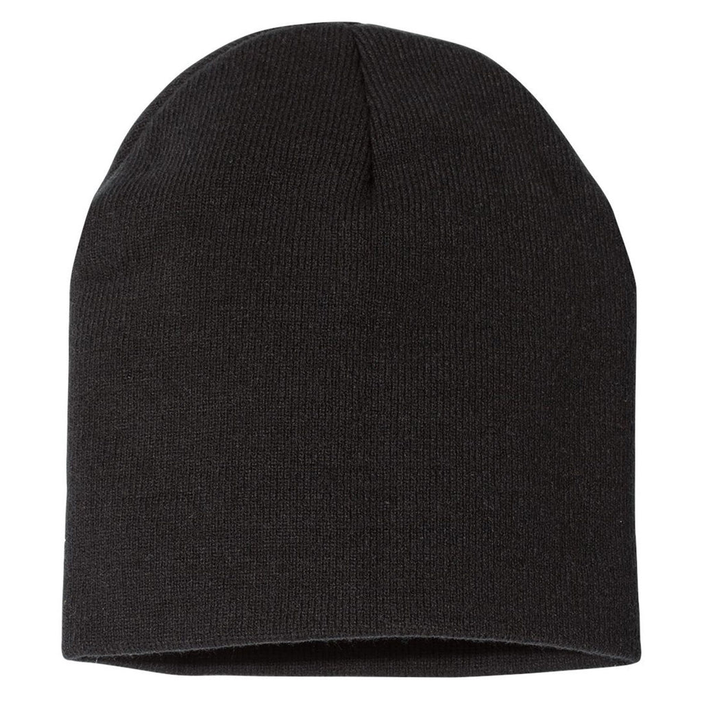 Hit the slopes or the skate park in an embroidered Bayside Black Union-Made 8.5 Beanie. The simplistic style of the acrylic knit beanie is comfortable and convenient. Top off a modern, hipster look with a custom logo beanie or stay protected when working in cooler temperatures. Also, great when simply enjoying the great outdoors skating, biking, or hiking. Due to style and fit, this beanie makes a great employee gift with a corporate logo at a great price. Order an entire case and give these out to new clients or use as promotional items to raise awareness.Highlights