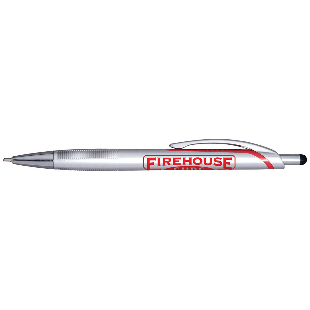 Want a high-tech looking pen? The custom Hub Pens Red Trim Silver X2 Stylus Pen with Blue Ink features a design that'll pique your interest. With sleek platinum barrels accented by a ridged trim, grooved grippers, a super sensitive stylus point and a hybrid blue ink, the X2 surely has the style and function fully upgraded. Make it a personalized employee gift or event giveaway by adding your custom logo!