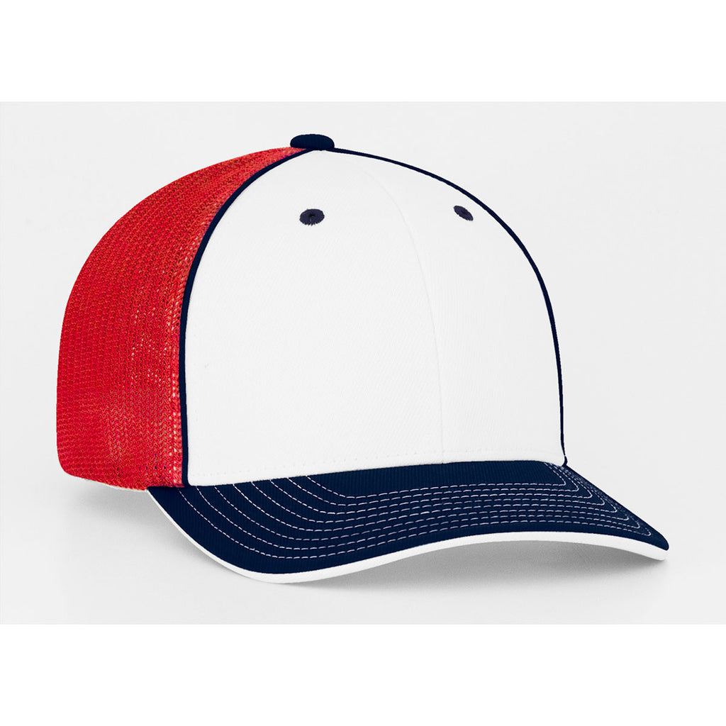 Pacific Headwear White/Red/Navy Universal Fitted Trucker Mesh Cap