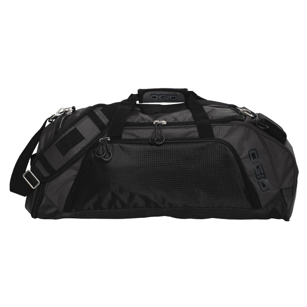 Make business travel conveniently easy by ordering the embroidered OGIO Gear Grey/Black Transition Duffel. Designed with tough to rip and tear polyester, double rip-stop and PVC backing, the rugged duffel resists water damage by receiving a coat of protection. The large main comportment allows you to store business accessories at busy airport terminals. Versatile to use at the gym and during business travel, the stylish duffel will turn the heads of fellow travelers. Take advantage of the exposure by adding a custom logo on the large imprint area. Logoed corporate apparel gets the word out about your company. A bag of this quality also benefits your employees by gifting them with easier business travel.