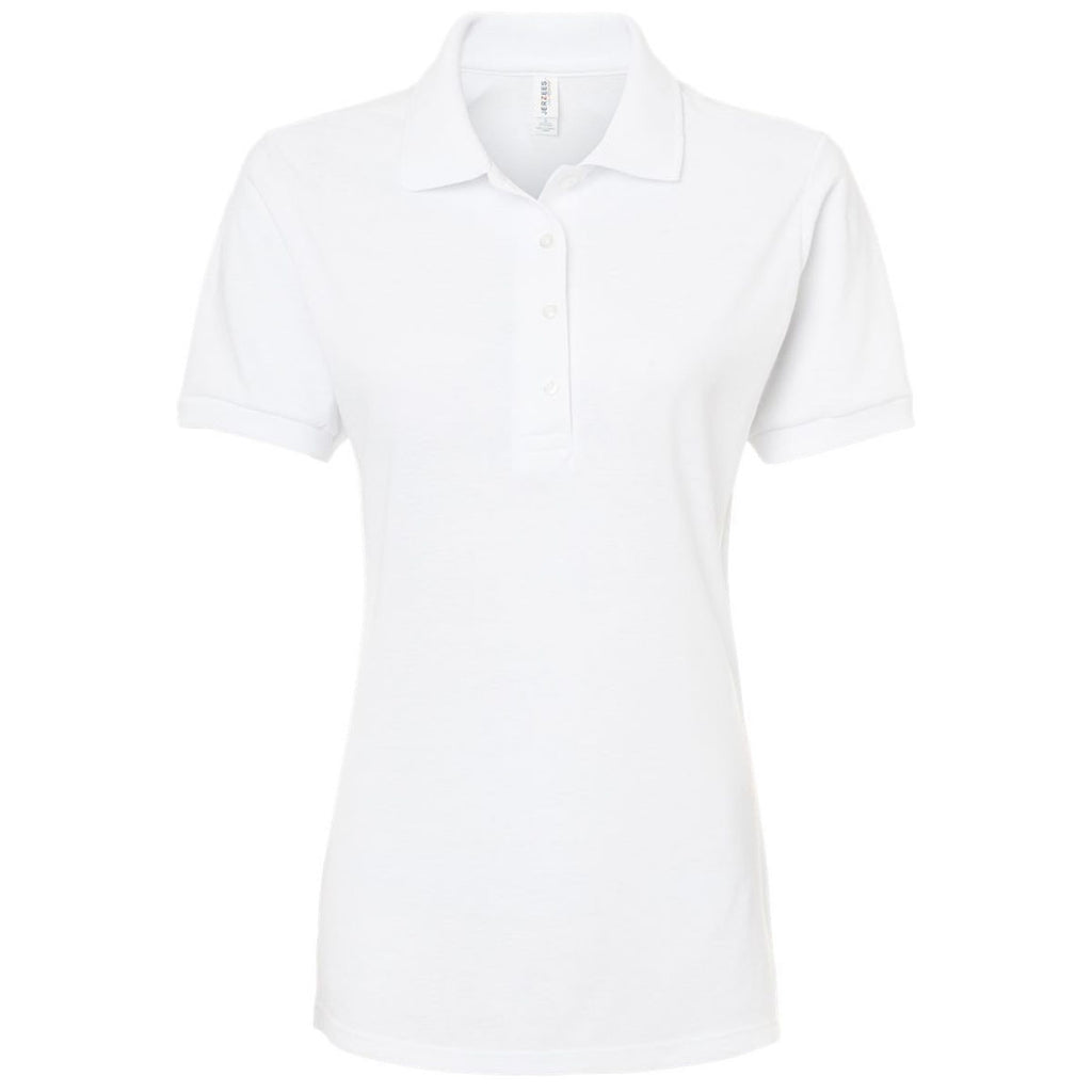 Choose embroidery for the Jerzees Women's White Dri-Power Polo to create a look that works in the office, as a uniform, or as a casual option when you are chilling out or at home. The sustainably sourced material is pre-shrunk with moisture management and a classic feminine fit. The tear-away label means all-day comfort no matter what is on the schedule.Corresponding Men's Style: Jerzees Men's White Dri-Power Polo