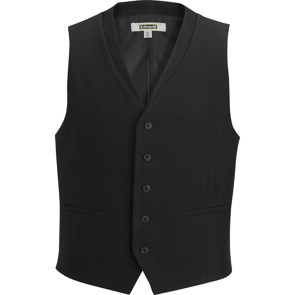 Add embroidery to the Edwards Men's Black Ottoman Trim Vest to create an upscale look that will function in the most professional of settings. The 5-button closure vest is ideal for layering under a suit jacket or wearing as part of a complete uniform. Add a corporate logo to show affiliation with a company or cause in a unique way. Place an order right away.Corresponding Women's Style: Edwards Women's Black Ottoman Trim Vest