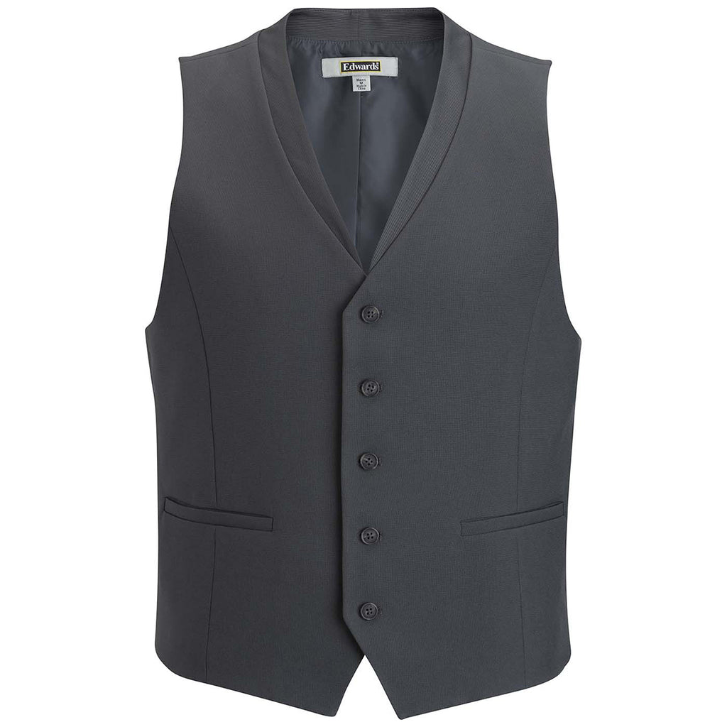Add embroidery to the Edwards Men's Steel Grey Ottoman Trim Vest to create an upscale look that will function in the most professional of settings. The 5-button closure vest is ideal for layering under a suit jacket or wearing as part of a complete uniform. Add a corporate logo to show affiliation with a company or cause in a unique way. Place an order right away.Corresponding Women's Style: Edwards Women's Steel Grey Ottoman Trim Vest
