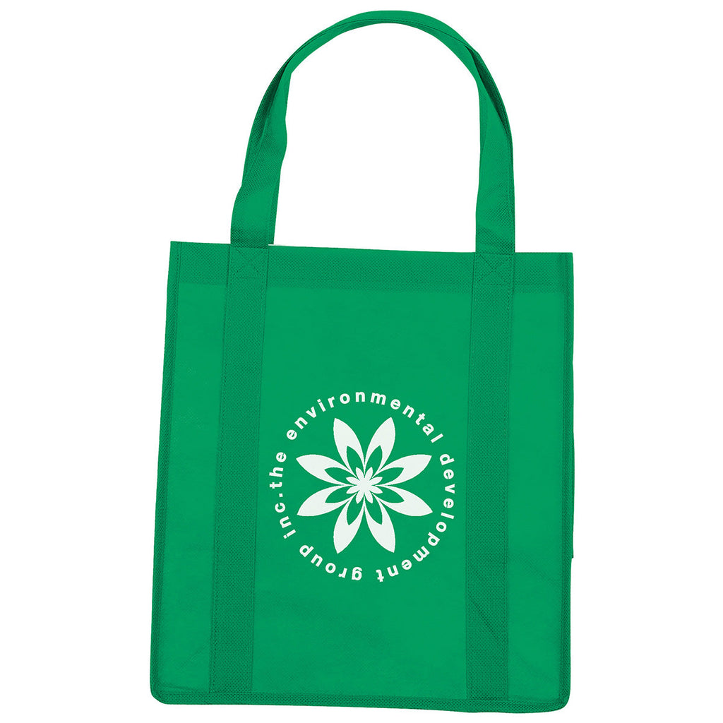 Shop with ease using a custom Good Value Kelly Green Grocery Tote. Whether you own a store, sell a specific product, or just like to show off your style, this tote is perfect for staying green and keeping your purchases organized. The reusable tote is ideal for quick trips to the market after work or school. Easily resell to encourage use in your store.