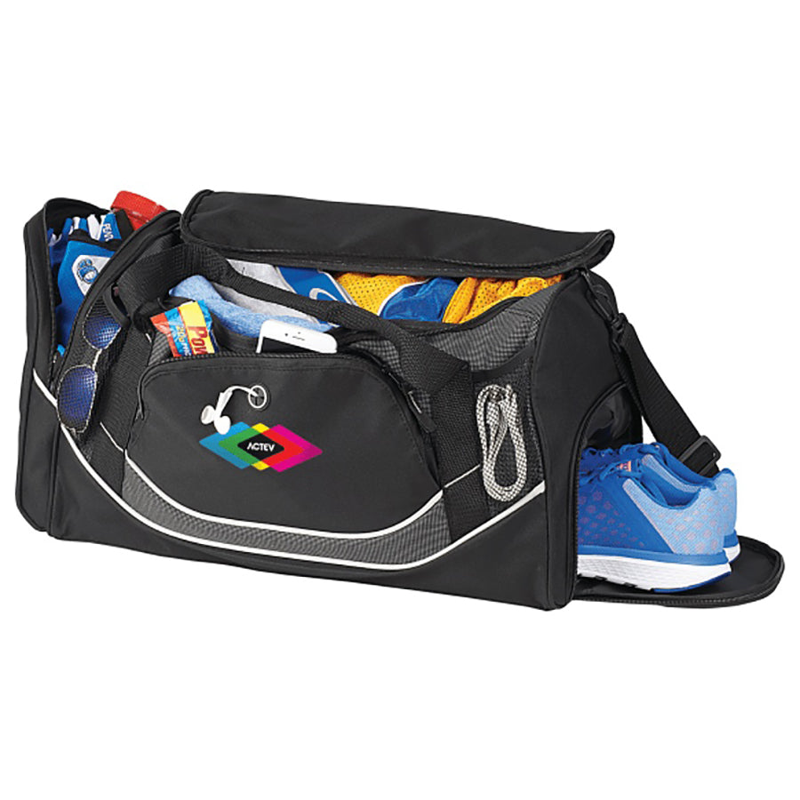 Stock the Dunes 21" Deluxe Sport Duffel Bag and offer your clients a top-quality, customizable solution for their needs. Designed for businesses catering to active clients, this versatile black duffle bag combines style and functionality. With its spacious 21" main compartment, it easily accommodates sports gear, travel essentials, or daily items.