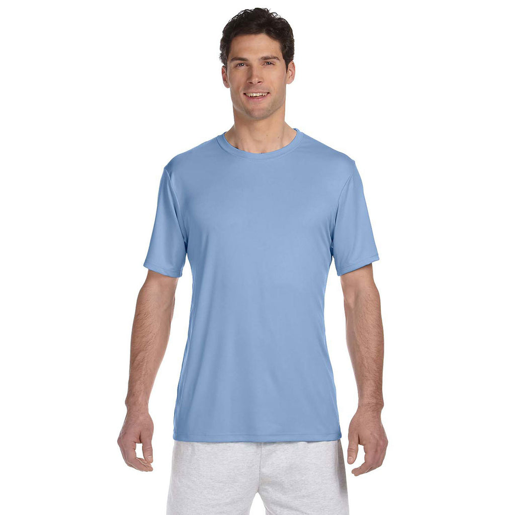 A perfect t-shirt to carry your screen print can be found in the Hanes Men's Light Blue Cool DRI with FreshIQ T-Shirt. Made of 100% polyester interlock this tee dries fast and wicks away moisture so your screen print will always look its best. The 50+ UPF rating offers excellent UV protection for those golf events or outdoor trade shows. Add a custom logo to let people know who you support or which company you work for at recruiting events. Available in a range of classic and unique colors, this tee will be an instant favorite among wearers. Place your order right away.Highlights