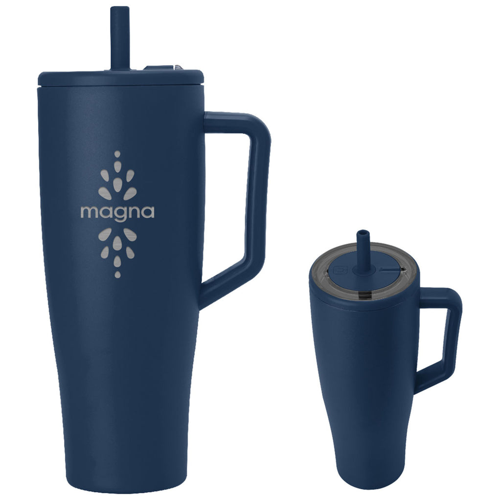 A new Era of straw tumblers is here! Meet the BruMate Matte Navy Era 40 oz Tumbler is leakproof and made for stress-free sips on the go. The patent pending leakproof straw lid can be easily opened and cleaned. Say goodbye to dirty tumblers. Order this large-capacity bottle for all-day hydration. Now available with a corporate logo.
