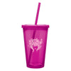Refresh your hydration routine with this 16oz double-walled insulated travel tumbler to make most of hot and cold beverages while on the go. Comes with a matching lid and straw. This ETS Fuchsia Spirit Acrylic Tumbler 16 oz can be featured with a custom label or logo for use as gift marketing/awareness campaign.