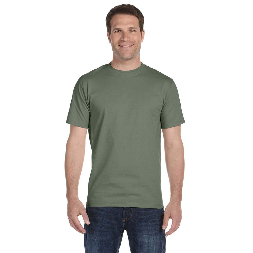 Custom logoed Hanes Men's Fatigue Green 6.1 oz. Beefy-T will be an instant favorite at all your recruiting events. Available in 44 different colors, your screen print will pop to grab the attention of passersby. Made of 100% ringspun cotton, the tag free neck label and cover seamed lay flat collar make this t-shirt the ultimate in comfort. Ideal as employee apparel for those that are working hard for the company or as a form of recognizable advertising at recruiting events. These t-shirts are so comfortable people will want to wear them daily, even outside of work. Place your order today to be prepared for the next big event.Highlights