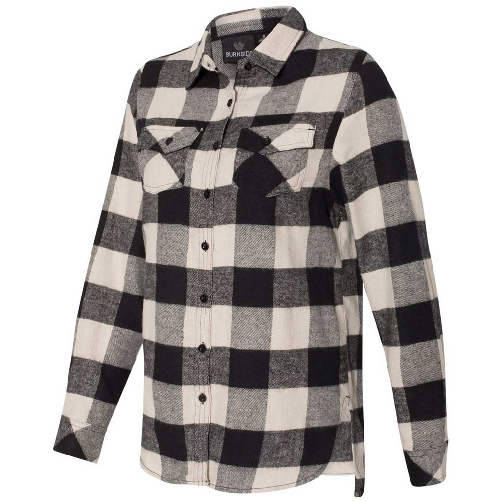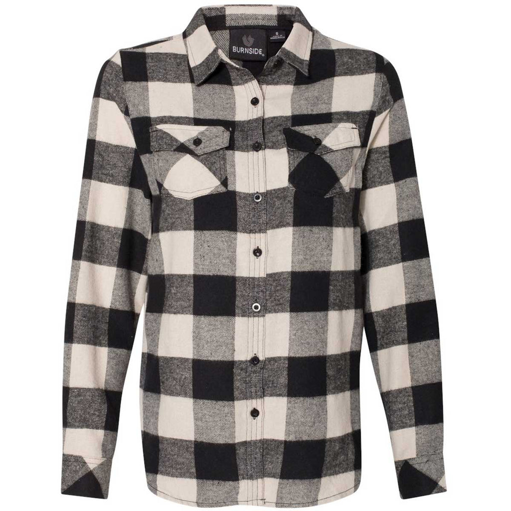 Burnside Women's Ecru/Black Buffalo Yarn-Dyed Long Sleeve Flannel Shirt with a custom embroidery is the go to choice when creating a fun look for employee apparel or general work wear. Available in nine gorgeous colors combinations, the 100% cotton button up offers two button flap closure pockets, button cuffs, and a half moon back yoke. Place your custom logo to use these to represent your company at outdoor events or every day as part of a uniform. Excellent for layering over a classic tee or pairing with a jacket, these custom long sleeve flannels will be an instant hit.Corresponding Men's Style:Burnside Men's Ecru/Black Buffalo Yarn-Dyed Long Sleeve Flannel Shirt