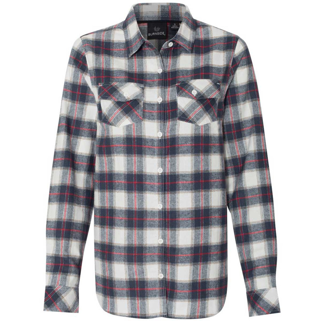 Burnside Women's White/Red Yarn-Dyed Long Sleeve Flannel Shirt with a custom embroidery is the go to choice when creating a fun look for employee apparel or general work wear. Available in nine gorgeous colors combinations, the 100% cotton button up offers two button flap closure pockets, button cuffs, and a half moon back yoke. Place your custom logo to use these to represent your company at outdoor events or every day as part of a uniform. Excellent for layering over a classic tee or pairing with a jacket, these custom long sleeve flannels will be an instant hit.Corresponding Men's Style:Burnside Men's White/Red Yarn-Dyed Long Sleeve Flannel Shirt