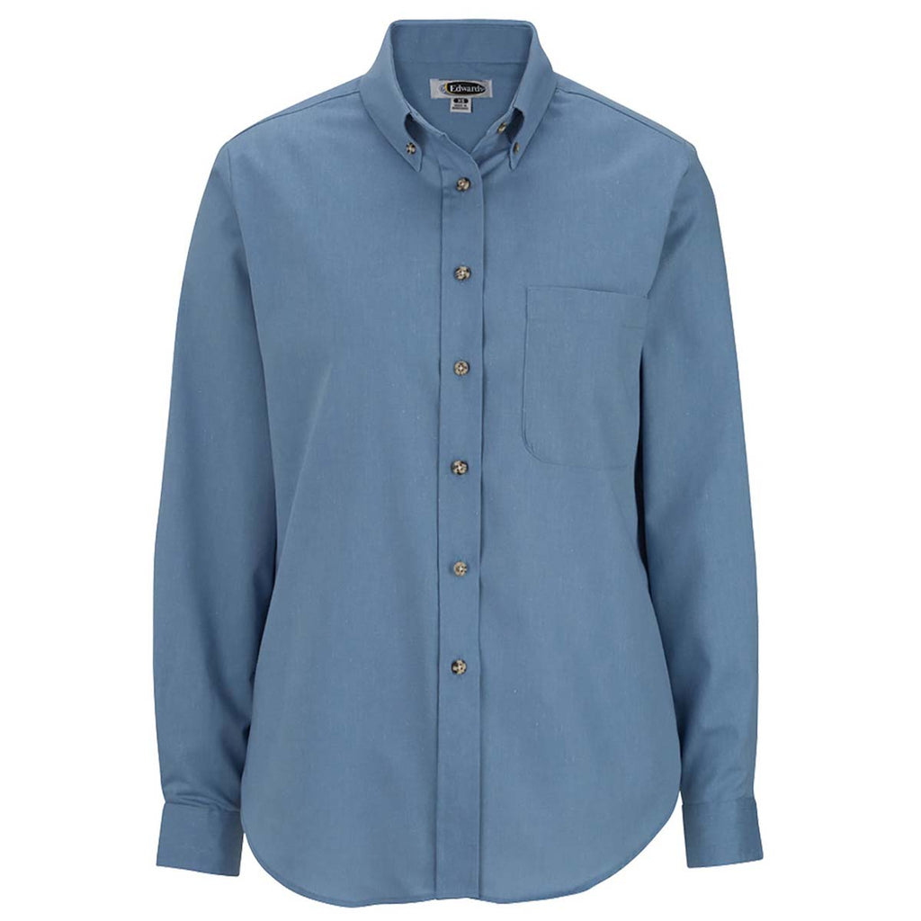 Edwards Women's Denim Blue Easy Care Long Sleeve Poplin Shirt