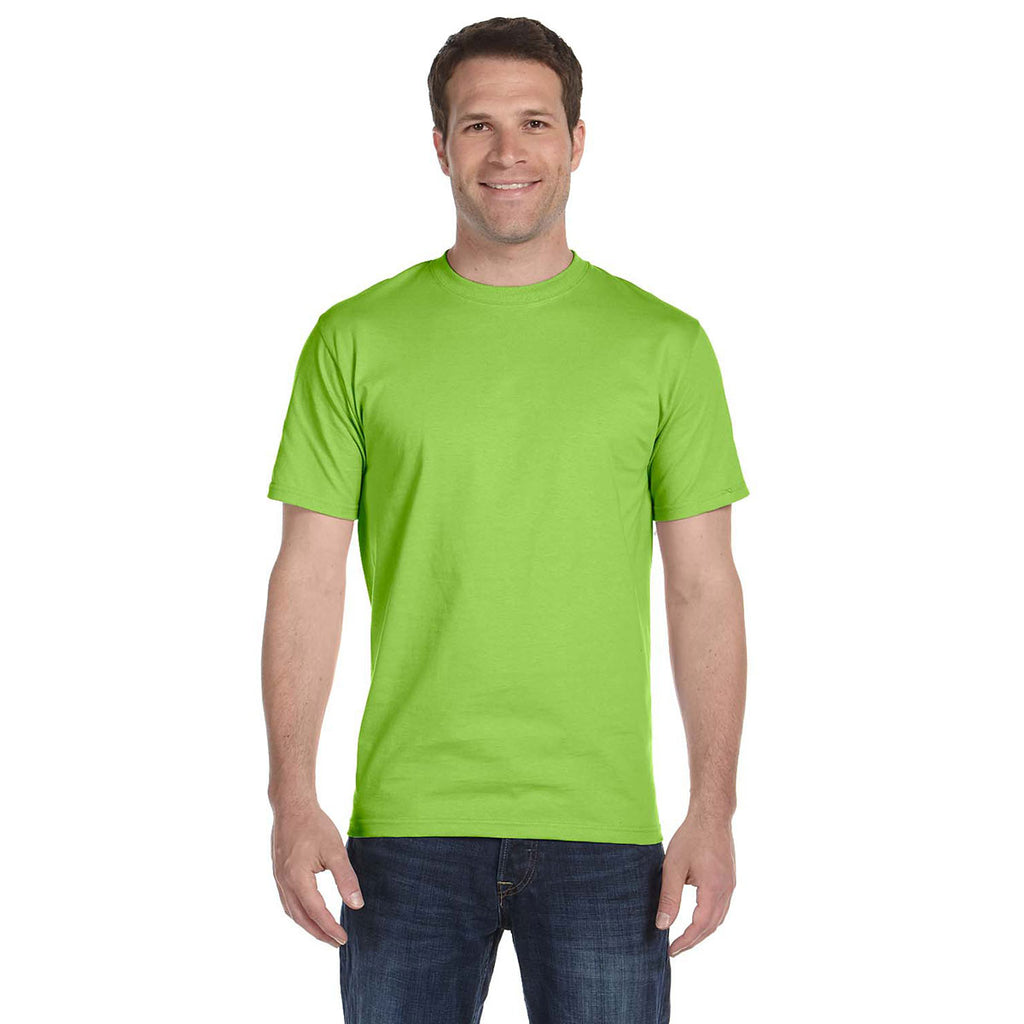 Add a custom logo to your Hanes Men's Lime 5.2 oz. ComfortSoft Cotton T-Shirt to show team or company spirit no matter the activity. The beautiful screen print will not only draw the eye, but offer the comfort needed to help people want to wear your shirt. Great as employee apparel for daily wear or to use at recruiting events to draw a crowd. Available in 27 different colors, the double-needle stitching and lay flat collar will make your custom tee an instant favorite of those who see or try them on. Order a few or an entire box before your next event is scheduled.Highlights
