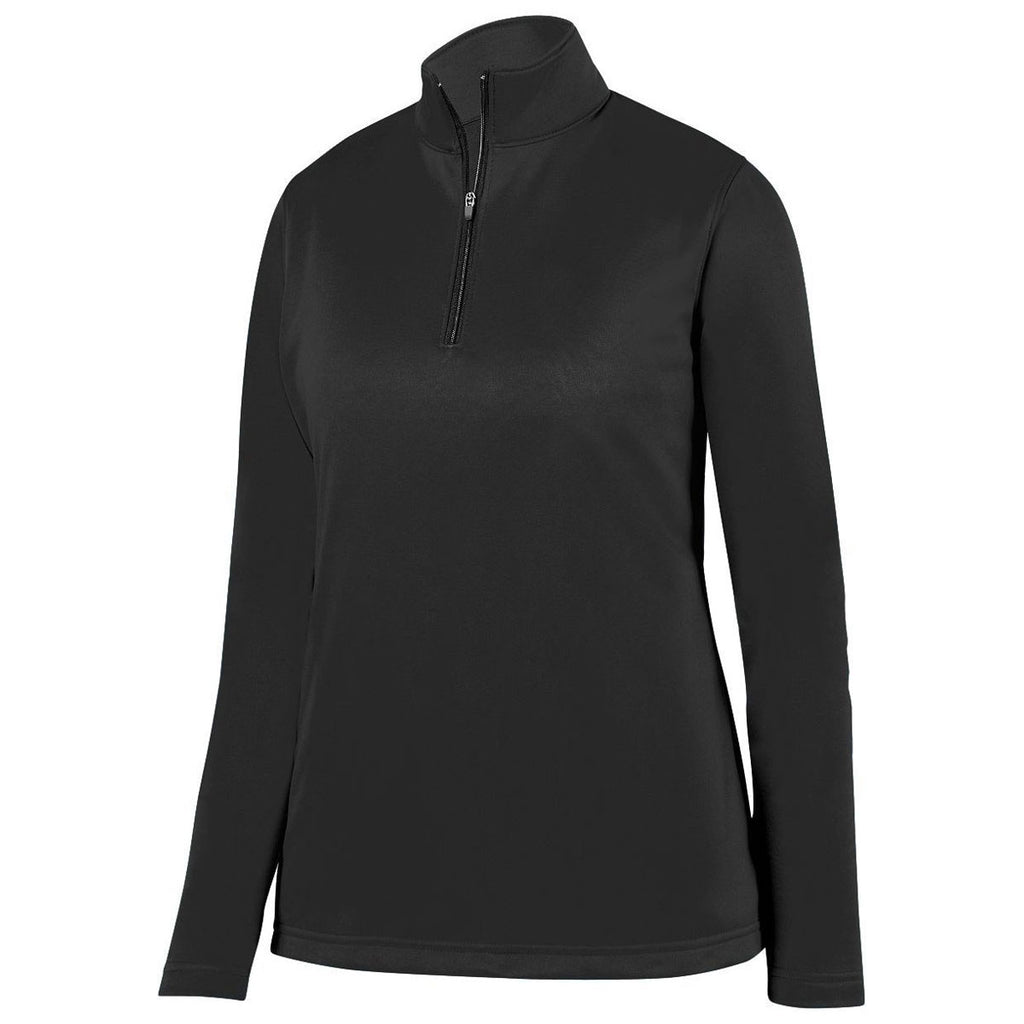Embroidery will look wonderful on the Augusta Women's Black Wicking Fleece Pullover made of mid weight polyester performance wicking fleece for warmth and comfort. Add a company logo to the moisture wicking quarter zip pullover with set-in sleeves and an open bottom. A feminine fit makes this fashionable and fun whether heading to work or hanging out with the family. Great as employee apparel for those who need to be outdoors or as employee gifts for any occasion. A custom logo adds possibilities for this pullover to use in any way you see fit. Place an order today to make sure your logoed apparel line includes these amazing pullovers.Highlights