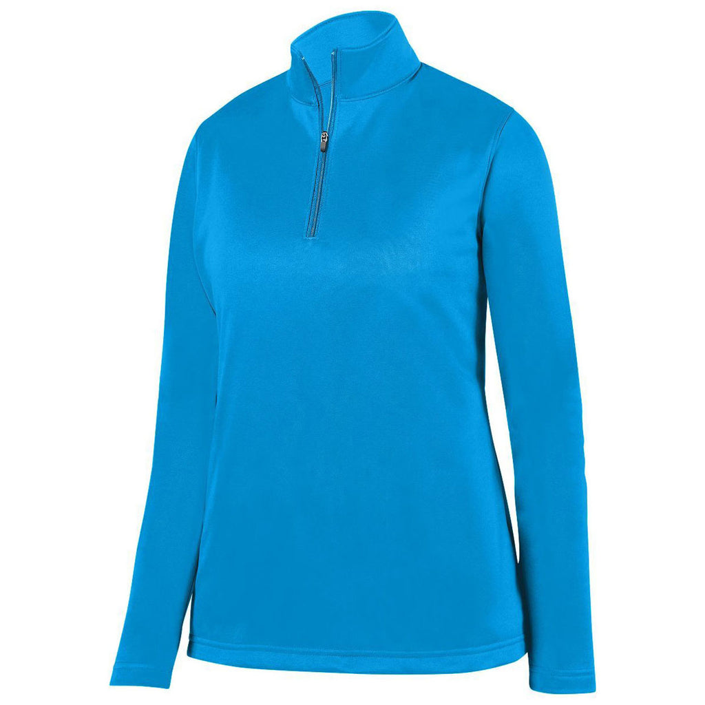 Embroidery will look wonderful on the Augusta Women's Power Blue Wicking Fleece Pullover made of mid weight polyester performance wicking fleece for warmth and comfort. Add a company logo to the moisture wicking quarter zip pullover with set-in sleeves and an open bottom. A feminine fit makes this fashionable and fun whether heading to work or hanging out with the family. Great as employee apparel for those who need to be outdoors or as employee gifts for any occasion. A custom logo adds possibilities for this pullover to use in any way you see fit. Place an order today to make sure your logoed apparel line includes these amazing pullovers.Highlights