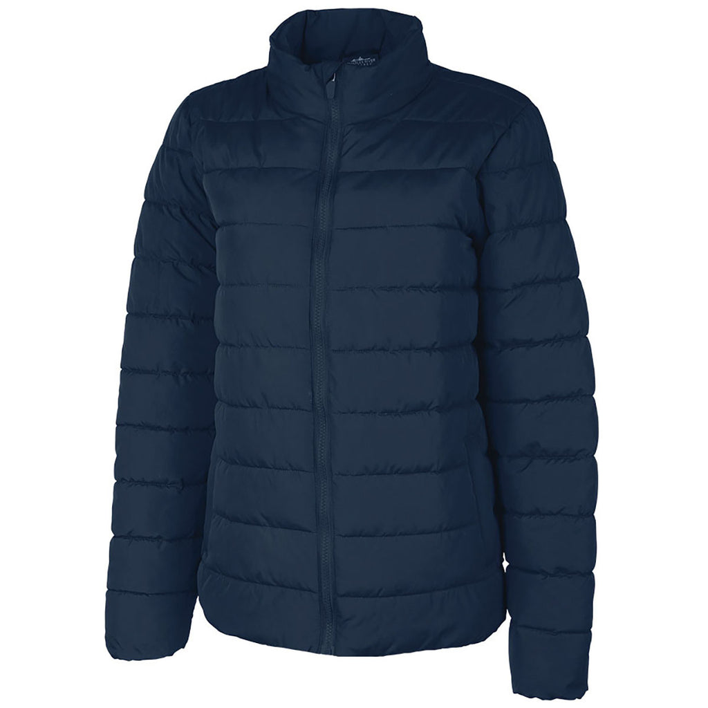 The custom Charles River Women's Navy Pioneer Puffer Jacket delivers sleek style with insulated warmth. Its lightweight feel makes it easy to wear while still offering protection from the cold. Add embroidery for standout corporate or team branding. This jacket is ideal for group orders, staff apparel, or personalized gifts that combine practicality and professional presentation.