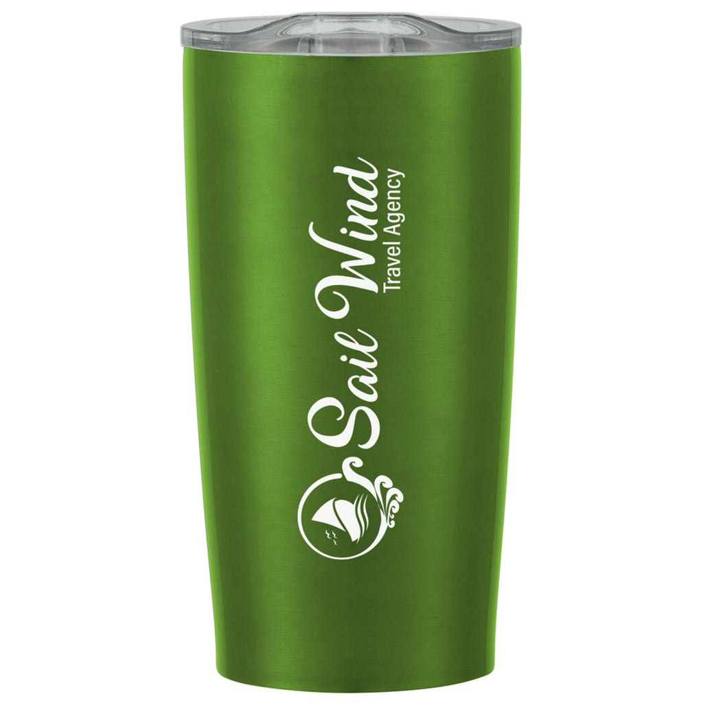 Hit Metallic Green with Clear Lid 20 Oz. Himalayan Tumbler with a custom logo makes your morning commute and afternoon drink a bit easier to enjoy. The stainless steel tumbler has double wall construction and keeps drinks hot or cool for up to 6 hours as needed. Choose the color you prefer to create a personalized item for your company or event.