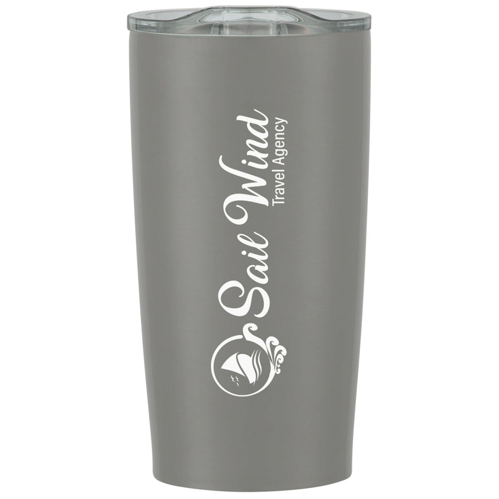 Hit Matte Grey with Charcoal Lid 20 Oz. Himalayan Tumbler with a custom logo makes your morning commute and afternoon drink a bit easier to enjoy. The stainless steel tumbler has double wall construction and keeps drinks hot or cool for up to 6 hours as needed. Choose the color you prefer to create a personalized item for your company or event.