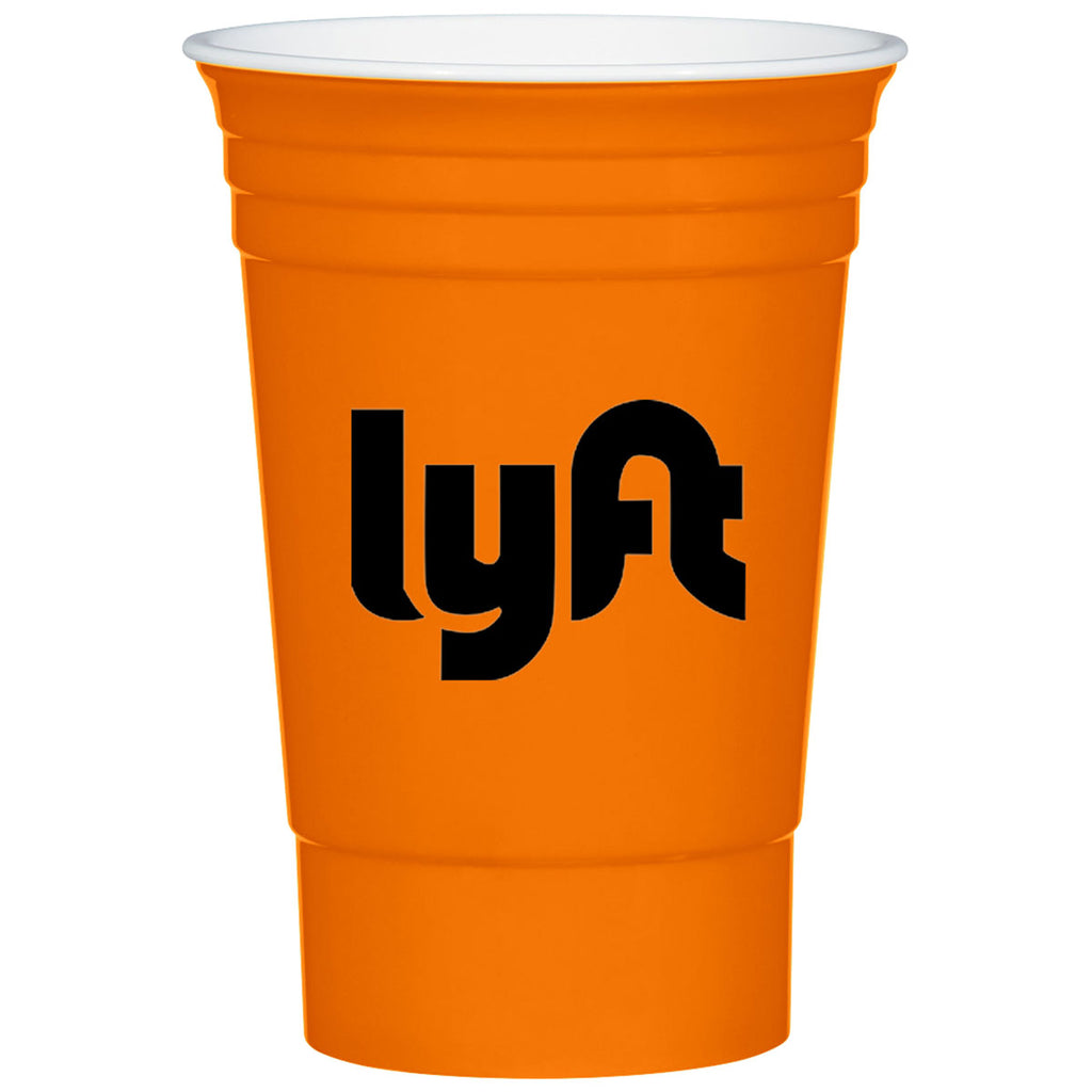Hit Neon Orange/White The Cup with a custom logo will keep your party going. This silkscreen custom cup is perfect for big events like receptions, family reunions, or tailgating, so everyone knows the host or sponsor. The large 16-ounce size is sturdy, reusable, and available in various color options. Serve your signature drink, or let people choose their own to keep the fun going.