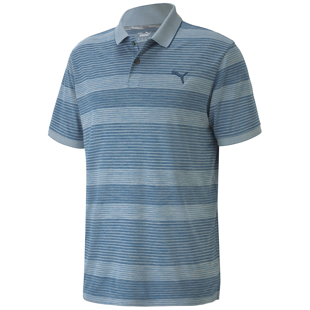 Land that shot in a custom Puma Golf Men's Digi Blue Landing Polo. Add a company logo to the 100% polyester short sleeve polo with gentle stripping at different levels that sets this polo apart. The Puma logo rests on the left chest showing the quality of the piece. Add embroidery to give these as custom gifts that everyone can enjoy. Ideal for shirts to be used at golf events or just playing a round for fun. Cut to allow you to move freely so your swing will not be affected, these polos are ready to go from the office to the back nine with ease.