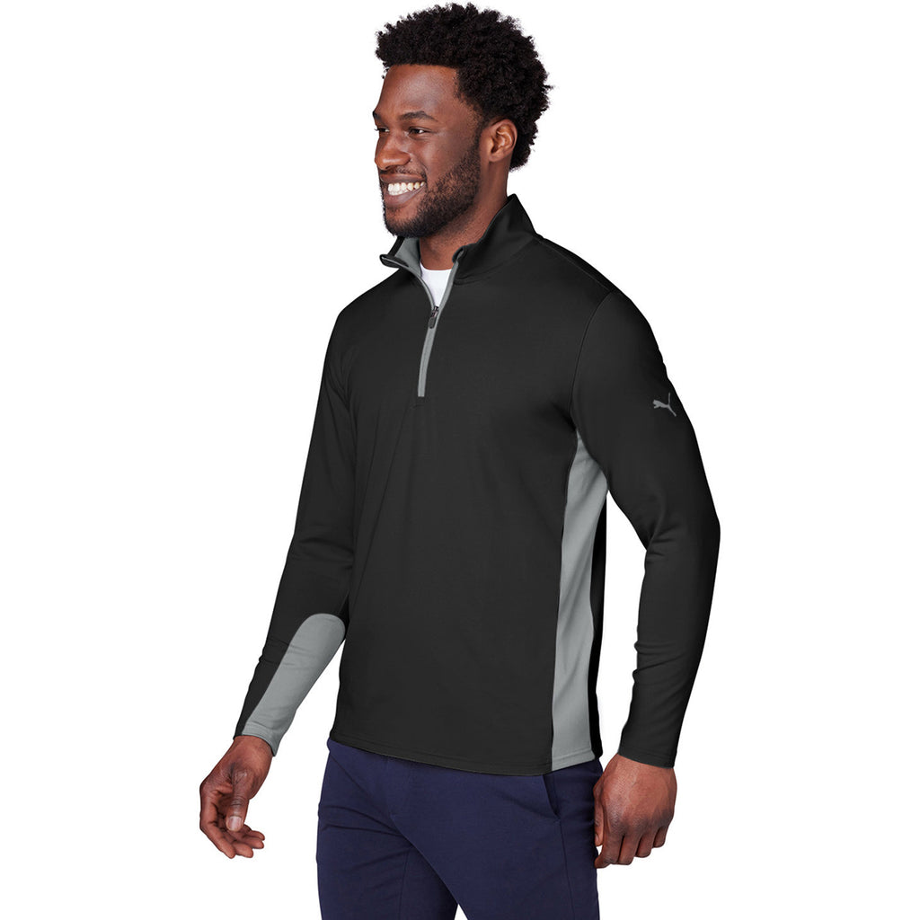 Puma Golf Men's Puma Black Gamer Golf 1/4 Zip with a custom logo is the way to go to create a quality look without loosing comfort. The moisture wicking, UV resistant 50+ protection of this lightweight 1/4 zip is a must have for those who work or play outdoors. Great for a day with the family, but fashionable enough to wear at the clubhouse and still look great. Order today.