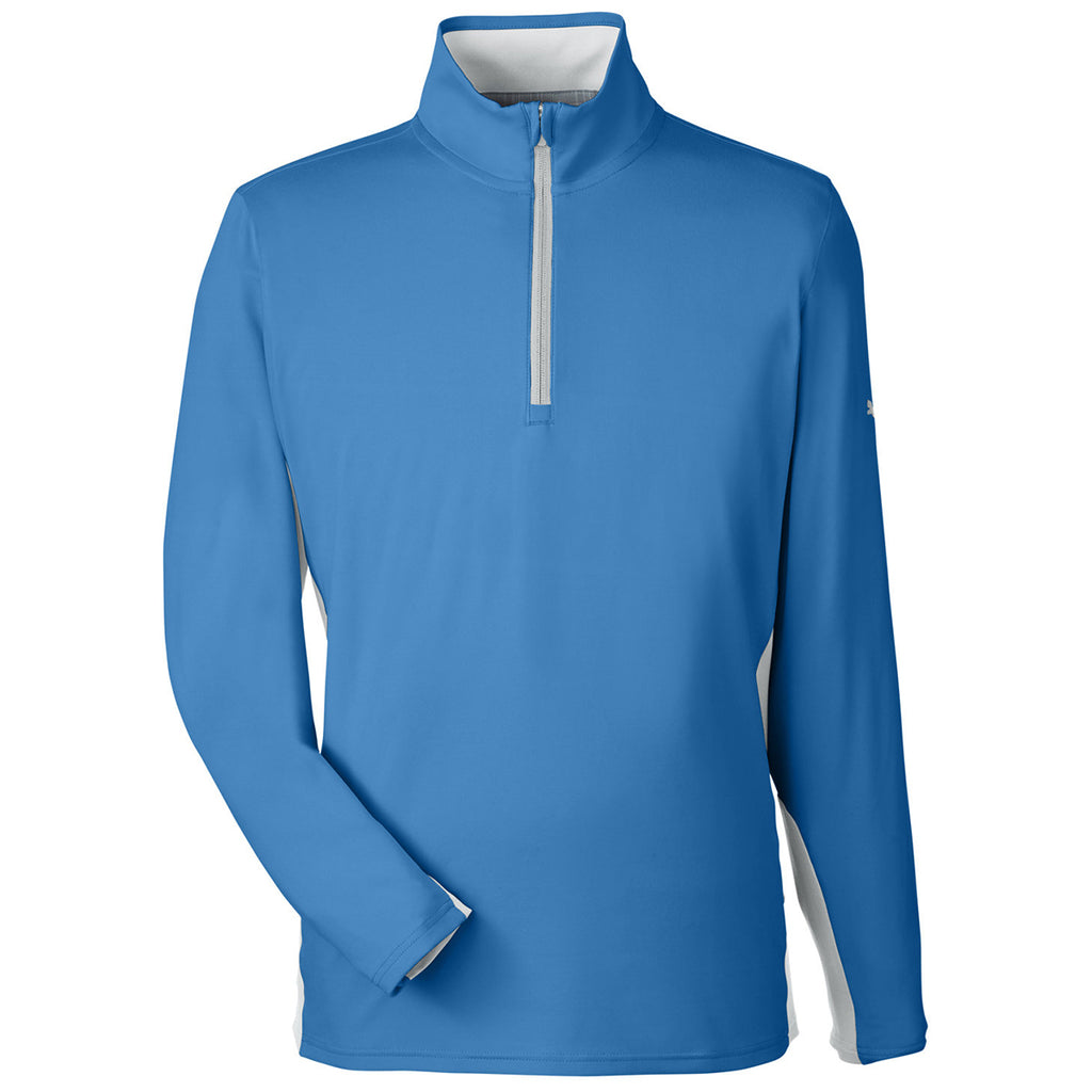 Puma Golf Men's Bright Cobalt Gamer Golf 1/4 Zip with a custom logo is the way to go to create a quality look without loosing comfort. The moisture wicking, UV resistant 50+ protection of this lightweight 1/4 zip is a must have for those who work or play outdoors. Great for a day with the family, but fashionable enough to wear at the clubhouse and still look great. Order today.