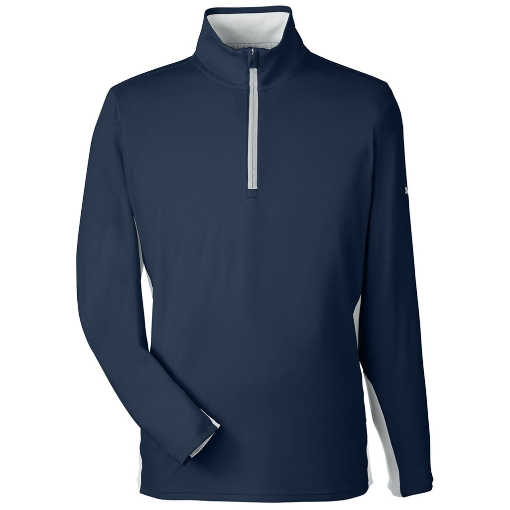 Puma Golf Men's Navy Blazer Gamer Golf 1/4 Zip with a custom logo is the way to go to create a quality look without loosing comfort. The moisture wicking, UV resistant 50+ protection of this lightweight 1/4 zip is a must have for those who work or play outdoors. Great for a day with the family, but fashionable enough to wear at the clubhouse and still look great. Order today.