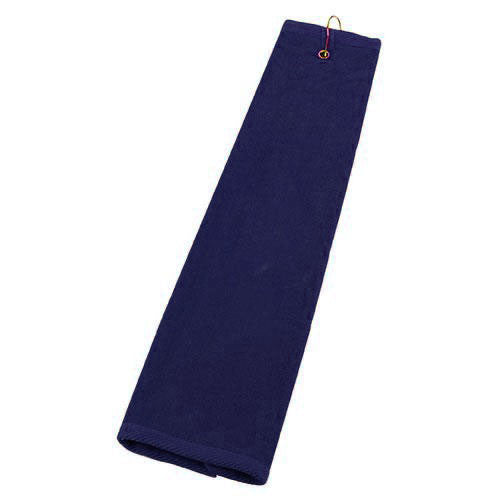 Manufactured with 100% plush cotton velour, the Navy Golf Tri-Fold Towel makes an excellent addition to your golf accessories. The rugged material allows you to keep your golf balls and clubs dry throughout an entire round. You can wash and dry the towel countless times and never see the colors fade or the fabric tear. The durable metal grommet and hook attach to your golf bag or if you choose. Attach your corporate logo to take your brand to the next level.