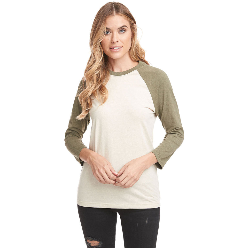Next Level Unisex Miltry Green/Cream CVC 3/4 Sleeve Raglan Baseball T-Shirt