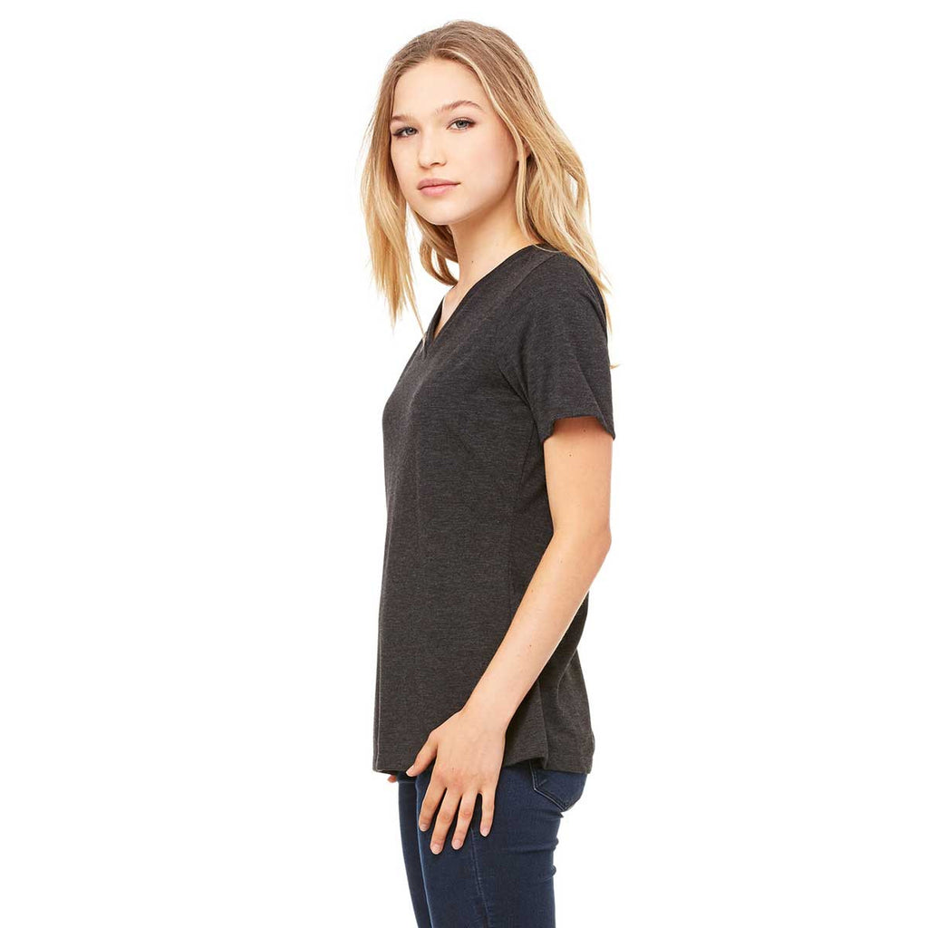 Bella + Canvas Women's Charcoal-Black Triblend Relaxed Jersey Short-Sleeve V-Neck T-Shirt