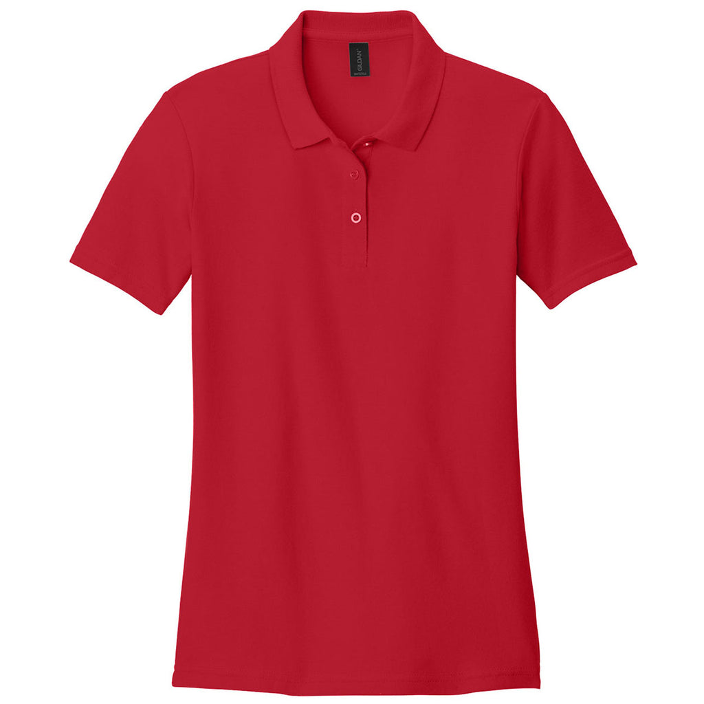 The custom Gildan Women's Red Softstyle Pique Polo offers a flattering, feminine fit with all the comfort you expect from a soft cotton blend. Its moisture-wicking fabric ensures you stay dry and comfortable, whether you're at work or on the go. This polo is a versatile, stylish addition to any wardrobe, perfect for casual events or business casual environments.Corresponding Men's Style: Gildan Men's Red Softstyle Pique Polo
