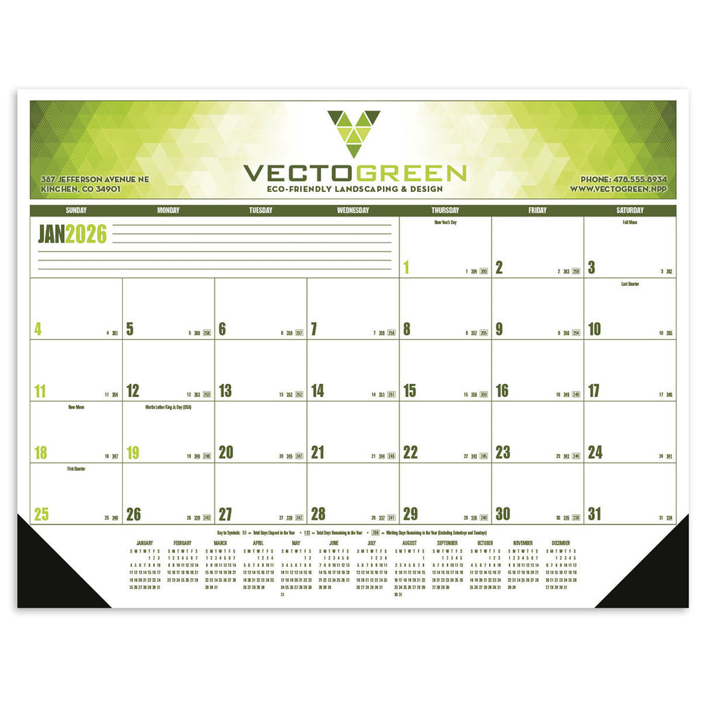 - Each calendar includes one set of black vinyl corners at no additional charge