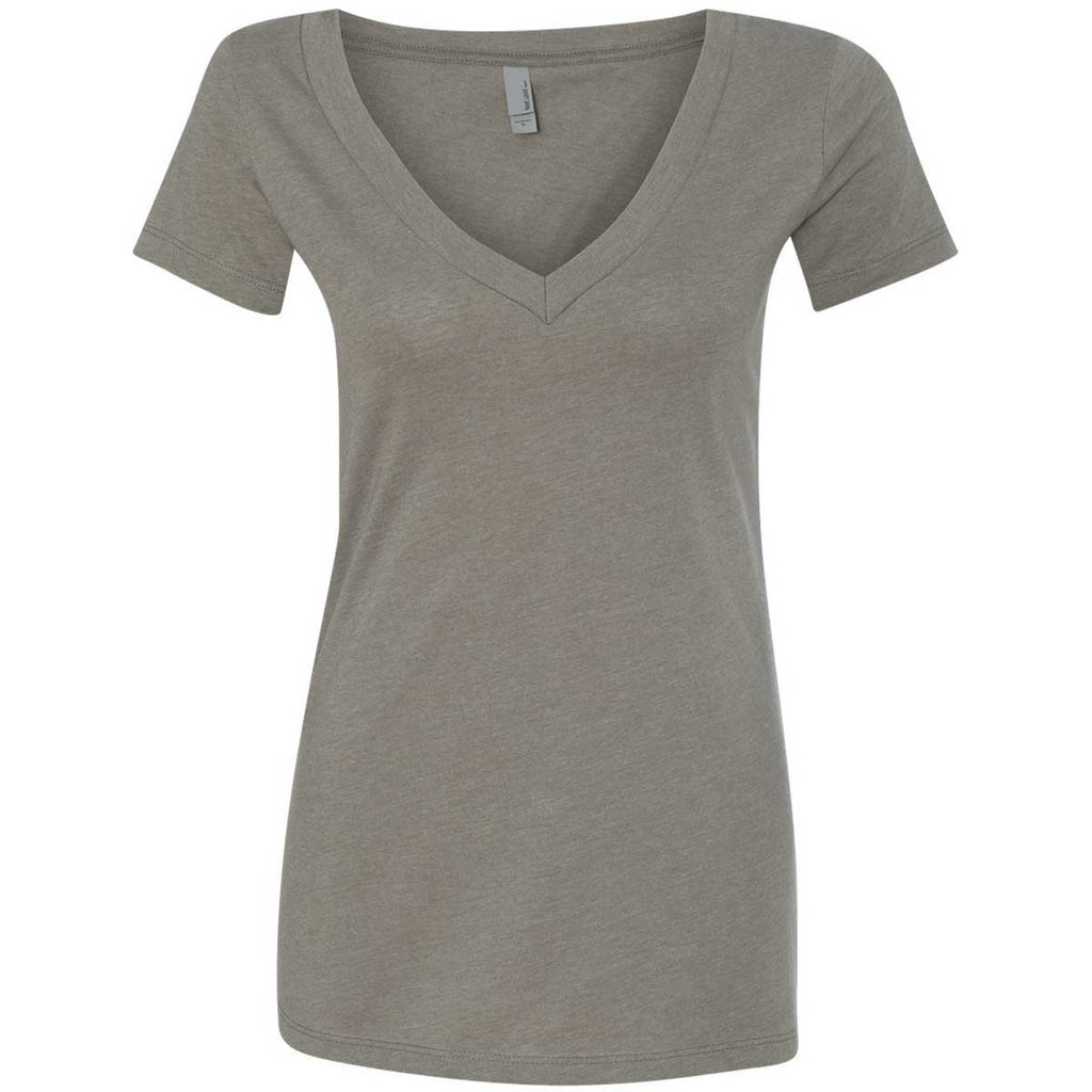 Adding another plain ol' crewneck tee to the outfit isn't always exciting. If you've ever agreed with that statement, perhaps it's time to switch to this Next Level Women's Warm Grey CVC Deep V Tee. Not only does it offer a degree of style that you can't get with the usual tee, but it has all the comfort and carefree attitude of a crewneck. If only all shirts could give you an added layer of interest in your outfit without feeling like they added another layer of discomfort as well. But thankfully, v-necks like this can rescue a drab wardrobe in a hurry. With Merchology, you can add a custom logo to take this v-neck to the next level.Setup includes free 2-color logo on 1 location. If you need more colors added to your logo, or another imprint location, please inquire with a Merchologist.