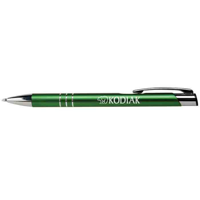 Push retractable action ensures you always see a tip pop out of this popular Hub Pens Green Sonata Pen designed and manufactured by Hub Pen. The highly durable tip delivers even applications of ink to prevent splotches from making your handwritten notes unrecognizable. Hub Pen ink also never bleeds into paper or other types of writing surfaces. Attach your company logo to attract the interest of customer prospects.