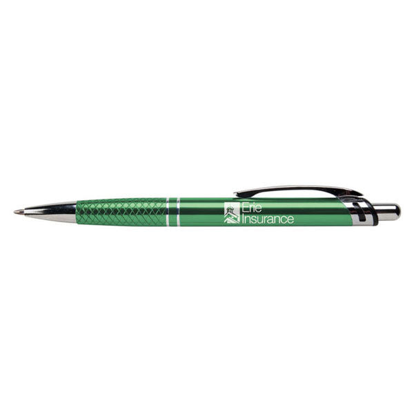Garner global appeal when you advertise your company with this elegant Hub Pens Forest Green Nautica Pen! Exquisitely styled with a crisscross grip that adds some extra luxe to your promotional campaign. Showcasing your name or logo, the silver engraving matches the posh silver accents of this classic push-action retractable pen that's all set to build brand awareness.