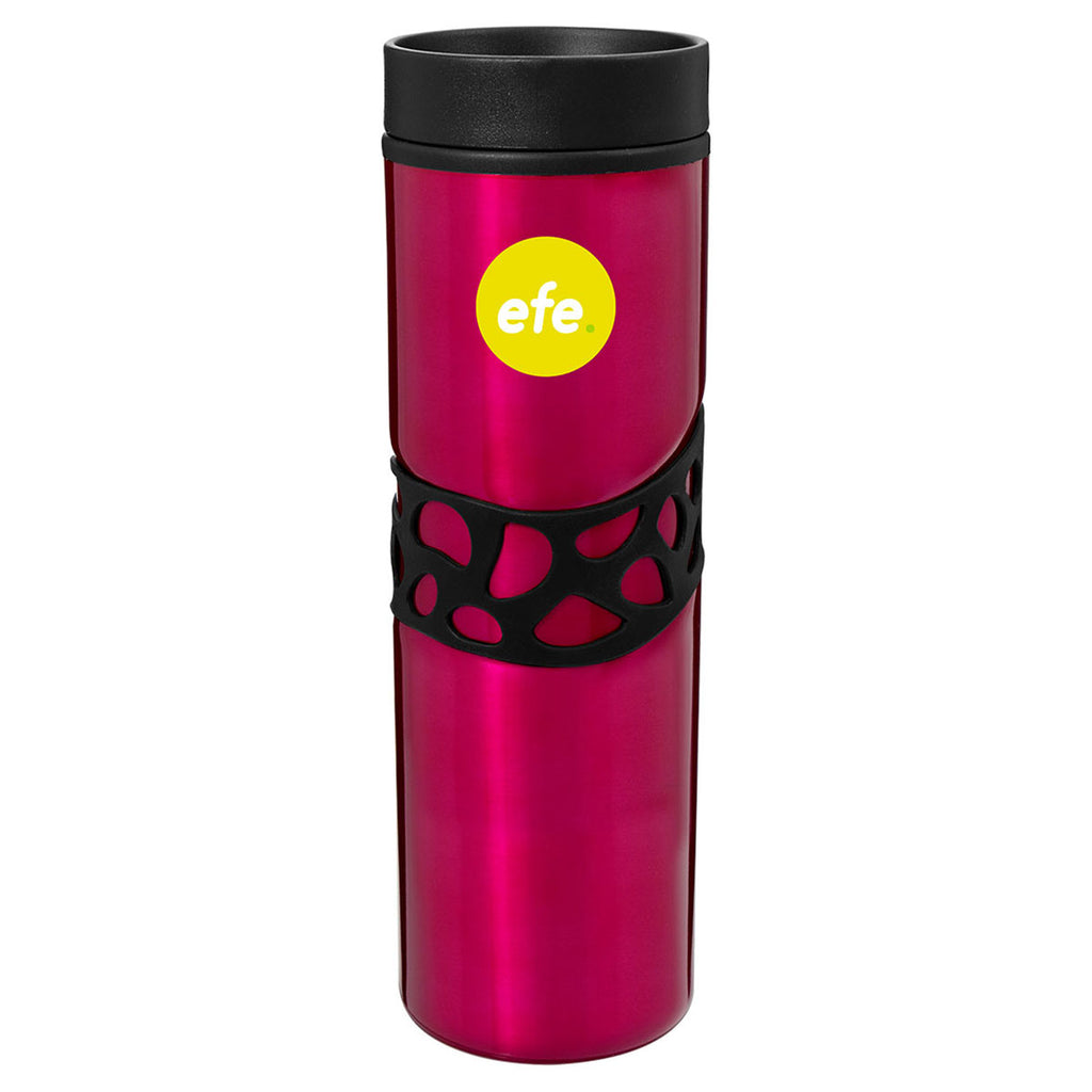 Take your beverage to go in this minimalist, ETS Fuchsia Montara Gripper Stainless Steel Tumbler 16 oz that features double wall insulation to ensure your beverage stays hot for hours. A push-on swivel minimizes effort for on the go user. Give away this personalized 16 oz tumbler as a gift with company's logo on it. The minimum order for this product is 24 pieces.Highlights