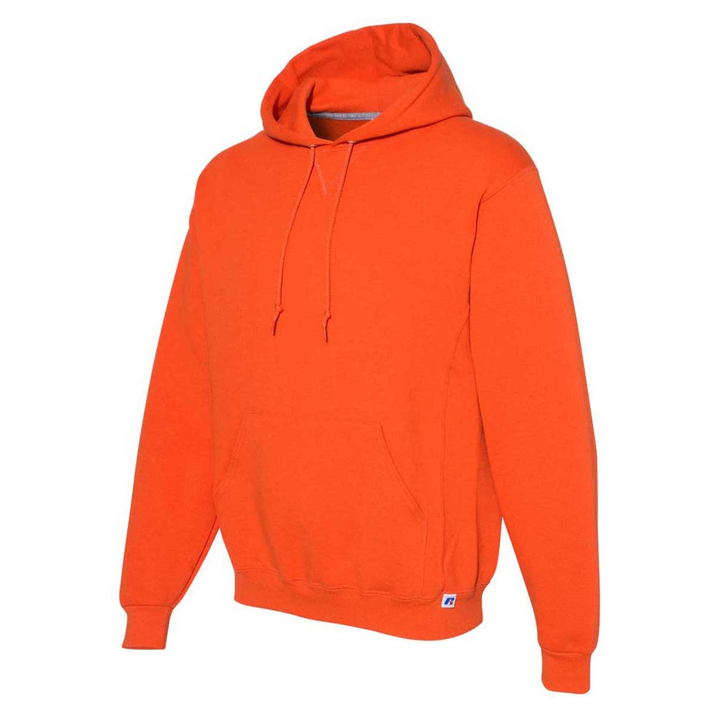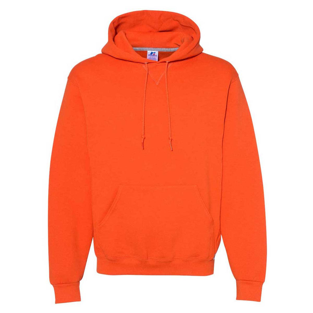 Enjoy the day in a screen print Russell Athletic Men's Burnt Orange Dri Power Hooded Pullover Sweatshirt. This comfortable, easy to wear pullover sweatshirt has Dri Power moisture management properties with a simple drawstring hood. Add a custom logo to use as warm up gear for athletic teams or to promote your company in a unique way. Great for everything from tailgates to working out to chilling with friends. Add a unique design to give as custom gifts for any occasion or just add to your personal wardrobe.Highlights