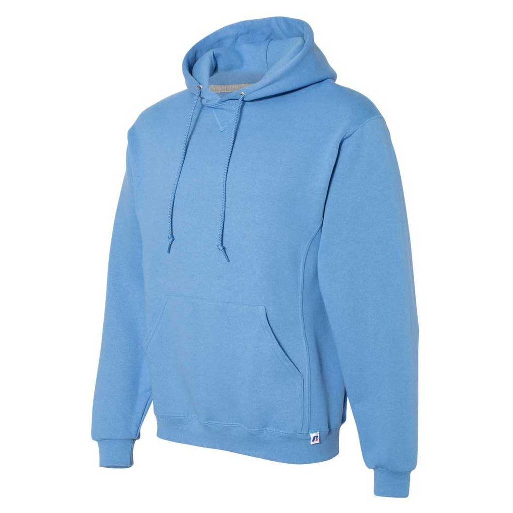 Enjoy the day in a screen print Russell Athletic Men's Collegiate Blue Dri Power Hooded Pullover Sweatshirt. This comfortable, easy to wear pullover sweatshirt has Dri Power moisture management properties with a simple drawstring hood. Add a custom logo to use as warm up gear for athletic teams or to promote your company in a unique way. Great for everything from tailgates to working out to chilling with friends. Add a unique design to give as custom gifts for any occasion or just add to your personal wardrobe.Highlights