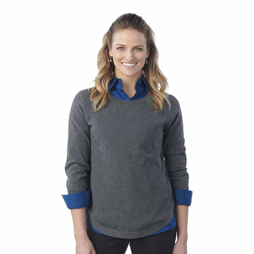 Fashion meets function when it comes to the Edwards Women's Smoke Heather Scoop Neck Tunic Sweater. This soft, comfortable layering piece will act as the perfect blank canvas for your company's custom logo or design. Breathable knit fabric also promises to keep the ladies on your team comfortable at tradeshows or other professional events.