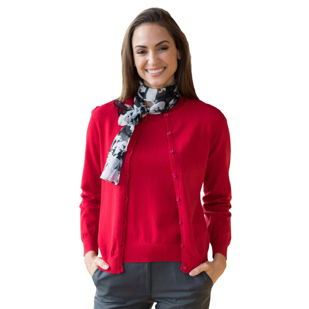Improve your wardrobe with a custom Edwards Women's Red Twinset Cotton Cardigan & Shell. This simple twinset is a perfectly paired short-sleeve shell and classic cardigan with dyed to match buttons. Add a company logo to use as corporate apparel or part of an employee uniform or something custom to build your own logoed apparel collection. The traditionally fitting, jewel neck cardigan with rib-knit collar, cuff, and hem is conservative without being unfashionable. The lightweight cotton blend is soft and smooth for all day comfort. Easily transition from the office to dinner out with the family or wear on your day-to-day errands.Highlights
