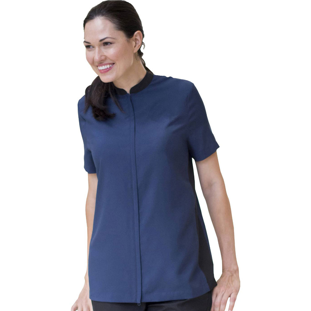 Update your uniforms with a custom Edwards Women's Bright Navy Essential Soft-Stretch Full-Zip Tunic. This easy to wear and care for tunic is lightweight with a traditional fit. The sleek, professional tunic has a traditional fit with plenty of stretch to allow for comfortable movement all day. Idea as employee apparel for those who need to look professional and high-end while still having something easy to clean each day. The tunic has a Scotchguard finish and soil release so even the toughest days are no match for this hardworking uniform.