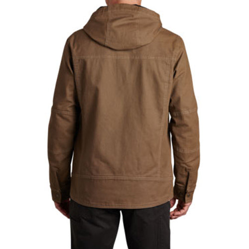 Design an embroidery for the KUHL Men's Dark Khaki Law Hoody for a heavy duty look that is up for the hard work you do each day. Add a company logo to the durable, stretch canvas hoody to use as employee apparel that is tough enough for almost every job. The rugged reliability of this hoody is what makes it a preferred choice by many. The generous cut allows for layering to accommodate for varying weather as every day work wear. The connected hood zips to chin level for added protection against the elements whether you are at work, out on a hunt, or hiking for enjoyment. Place an order today to have these as part of your logoed apparel line.Highlights