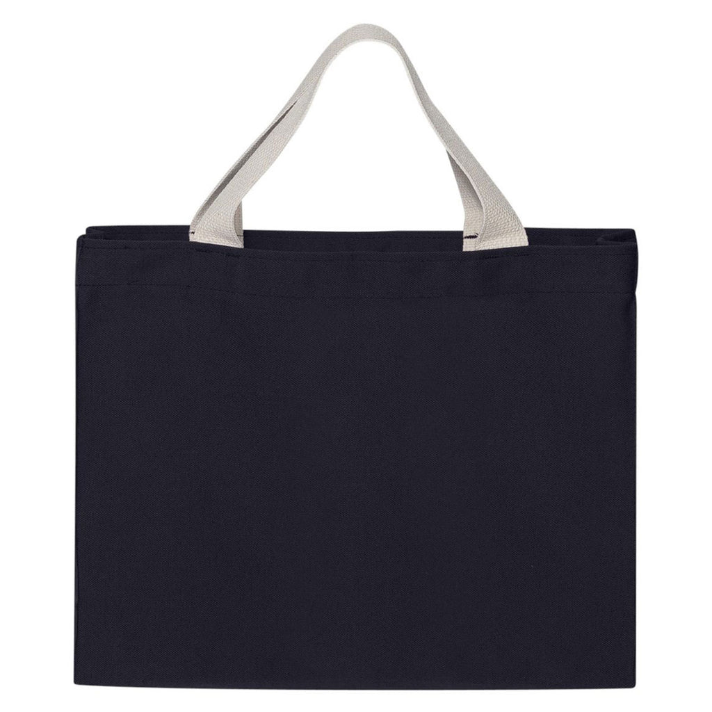 If you're looking for another way to promote your company name, put your custom logo on the Bayside Navy USA-Made Medium Gusset Tote. You could hand out a bunch of these logoed bags as promotional items at recruiting events or trade shows. Your company also could make use of the Bayside Navy USA-Made Medium Gusset Tote by equipping your workers who have to carry items out in the field. Already uniformed in logoed Bayside garments, these custom bags give your company an attention-to-detail vibe and add another layer of exposure for your company brand. They'd also make nice employee gifts.Highlights
