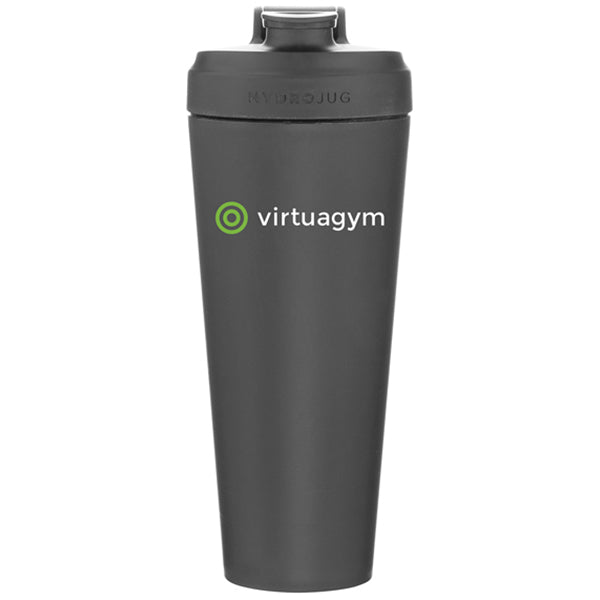 Enjoy a BPA-free custom HydroJug Black 24oz HydroShkr to stay hydrated during your workout or daily activities. The cold beverage HydroShkr has a threaded snap-fit lid with a straw, shkr grate and comes in a gift box if you choose to gift it to someone special. Ideal for health food stores, gyms, spas, and much more.Highlights